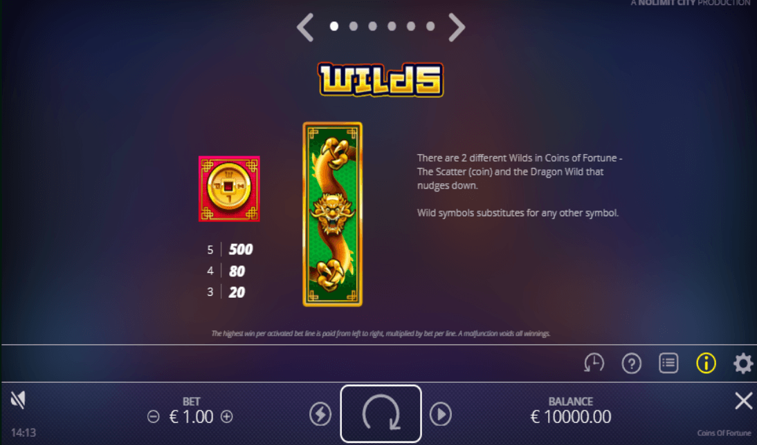 Coins of Fortune is a 5-reel, 20 pay line online slot machine with an Asian theme. Although the game has an Asian theme, players can still detect details that belong to animal, dragon, tiger, and Chinese themes as well. This slot machine was released in 2018 and has gained a reputation for being both new and reliable. This review will discuss the features of the Coins Of Fortune slot, the gaming software provider Nolimit City, the betting options, and the jackpot payout.