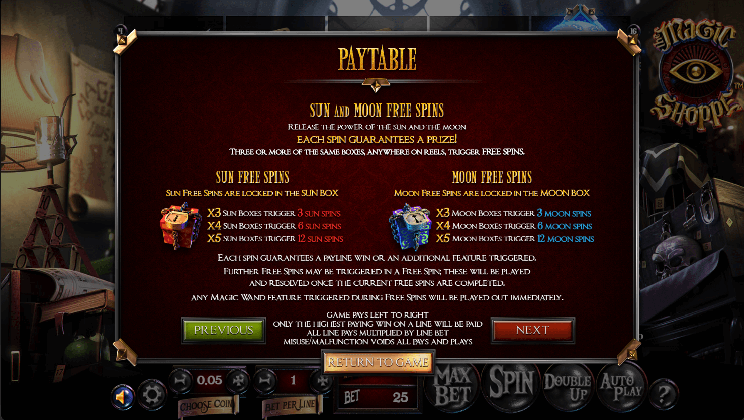 Magic Shoppe slot is a 5-reel and 25 pay-line video online slot machine, created in 2017. Certainly, game can be labeled as new and modern.