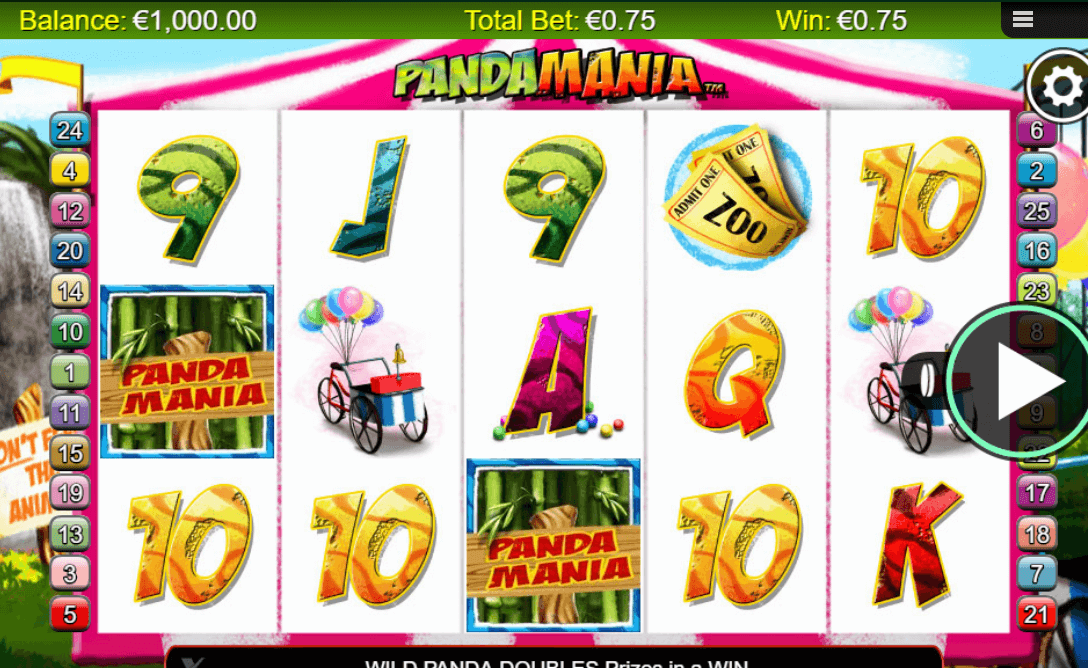 Pandamania slots contain coin size range from 0.01 to 2 coins, which gives a wide range invest upon the slots. It will be fair to say that this 5 reel and 25 payline game have made a great mark.