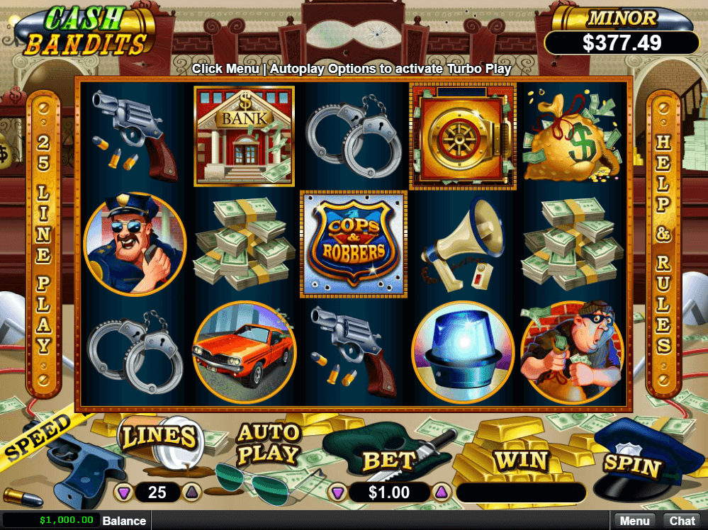 - The Wild symbol can substitute for all other symbols except the scatter symbols. Get five Wild symbols and you’ll be rewarded with 2500 coins. The Cops and Robbers badge serves as the scatter symbol. Land three or more scatter icons to activate the Vault feature, giving you a chance to win up to 90 spins with a win multiplier of 12x.
