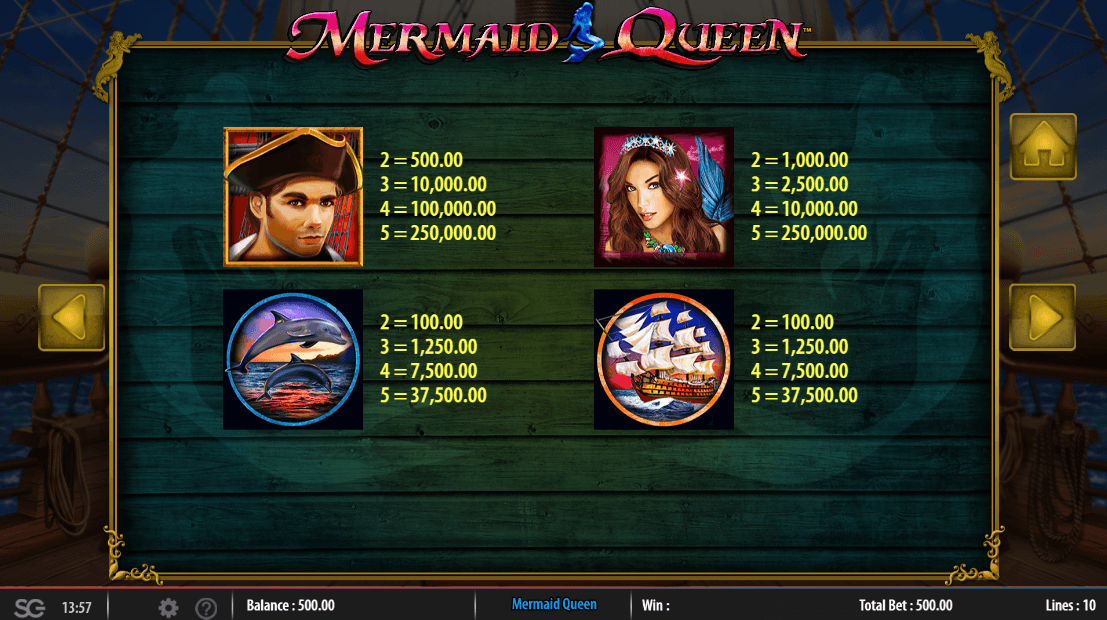 - With the appearance of Mermaid Queen on the reels numbered 1, 3, and 5, Mermaid Queen free spins are triggered